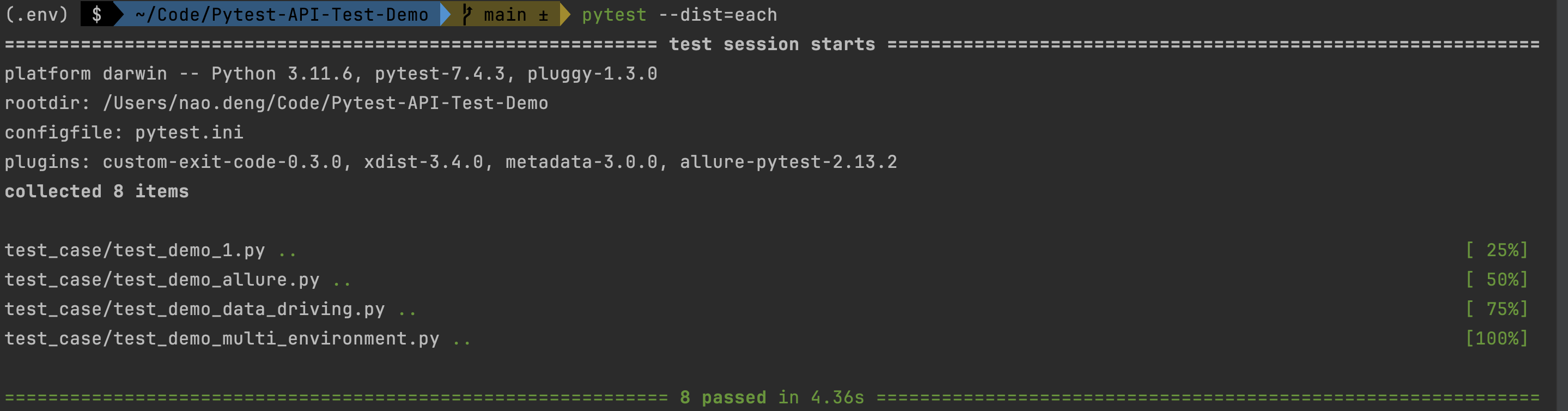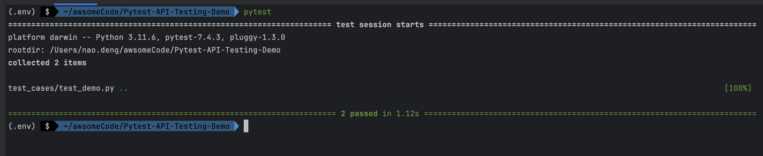 ENV=dev pytest test_case/test_demo_multi_environment.py- Run the prod environment test case