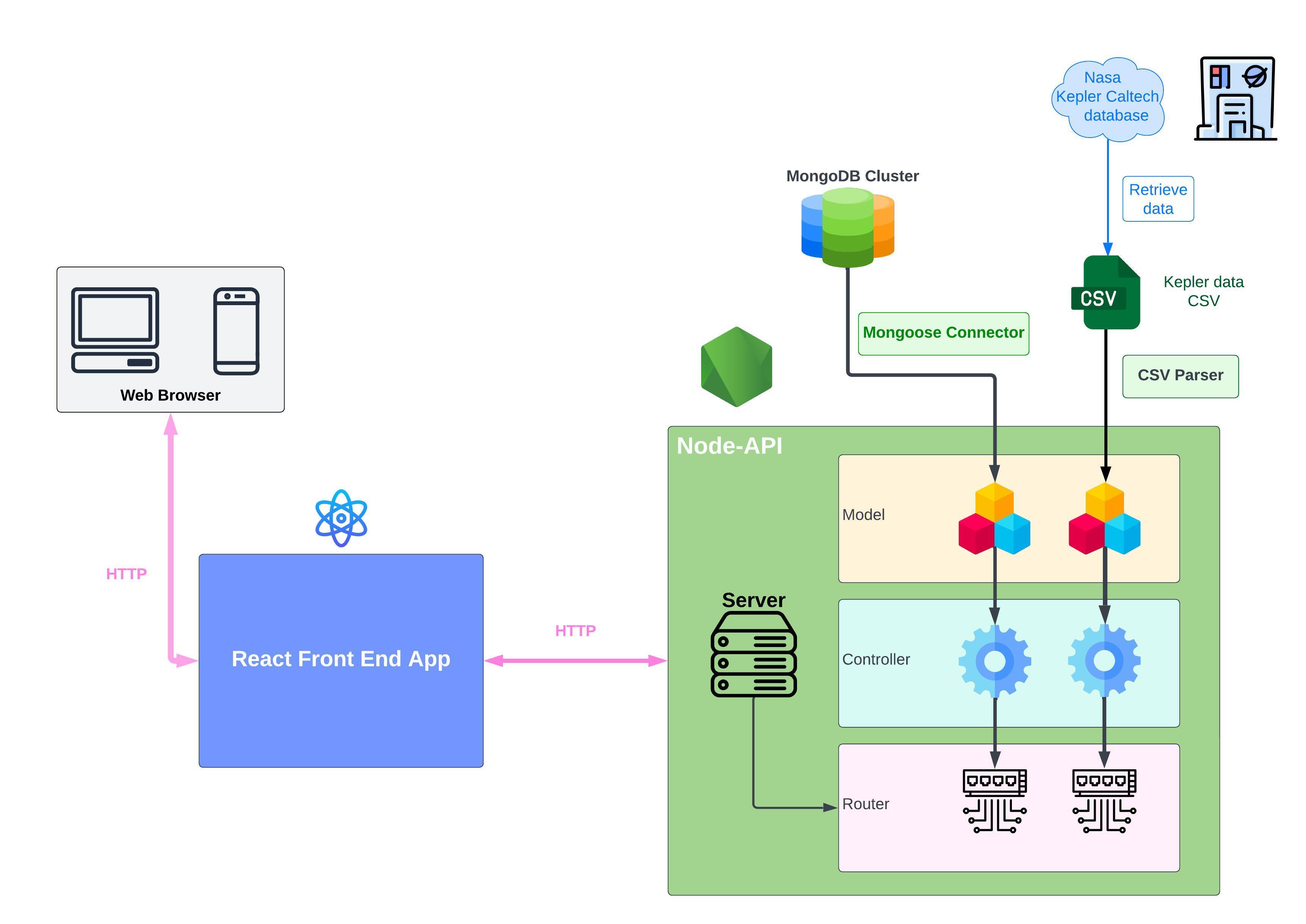 - planets: It uses in build 'fs' and npm package CSV Parser to retrieve data as the planets.