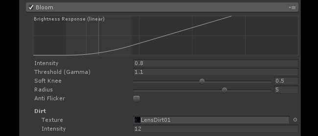 You can also add a Dirt Texture to simulate a dirty lens effect and affect how light is diffracted. You'll find a set of sample lens dirt texture in /PostProcessing/Textures/Lens Dirt/.