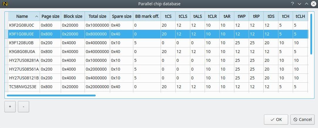 Open Settings - Parallel chip database and add chip parameters from datasheet.