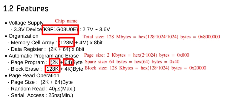 - Page Size - page size in bytes without spare area (hexadecimal).