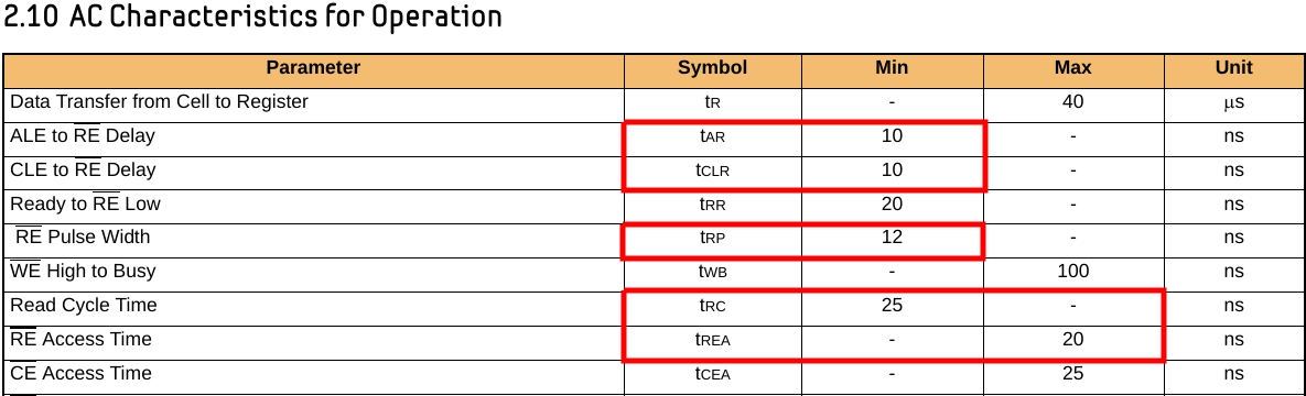 - tRP - Read Enable (RE) pulse width (ns).