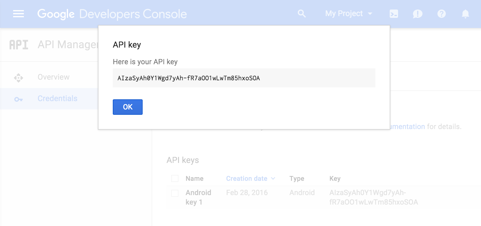 Next, we need to get ourselves a maps API key from Google to put into our AndroidManifest.xml.