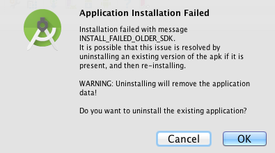 sudo mv /System/Library/Java/JavaVirtualMachines/1.6.0.jdk /tmpIf your minSdkVersion is higher than the Android version you are using (i.e. using an emulator that supports API 19 and your target version is for API 23), then you may see an error message that appears similar to the following: