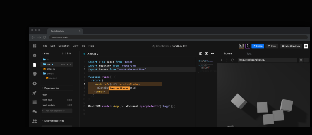 It's CodeSandbox Black, which you can get for VS Code here: https://marketplace.visualstudio.com/items?itemName=siddharthkp.codesandbox-black It's also possible to install this in CodeSandbox itself as it differs slightly from the default theme we provide there. |