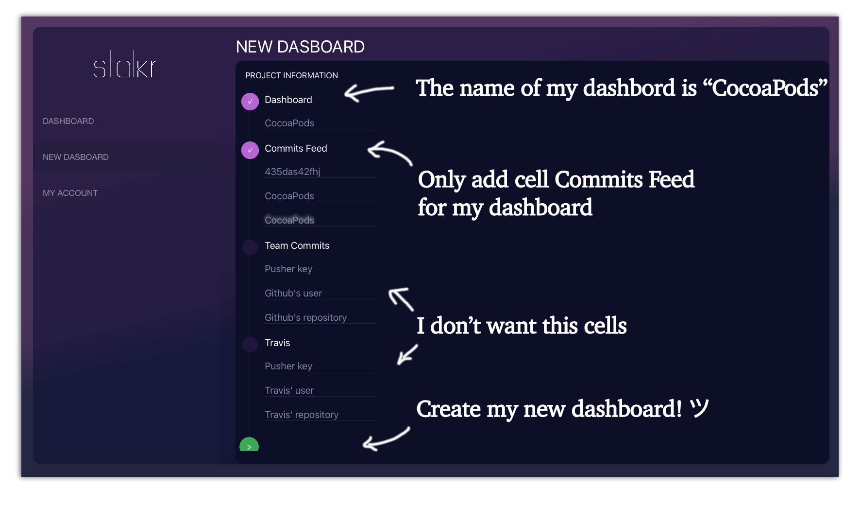 Dashboardand, in the next sections, you'll need to fill only if you want this cell in your dashboard. -