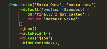 value: null. I cannot trace it down. The model class is clean except for the cast which is set to'extra_data' => 'object',.Path for the 2nd image