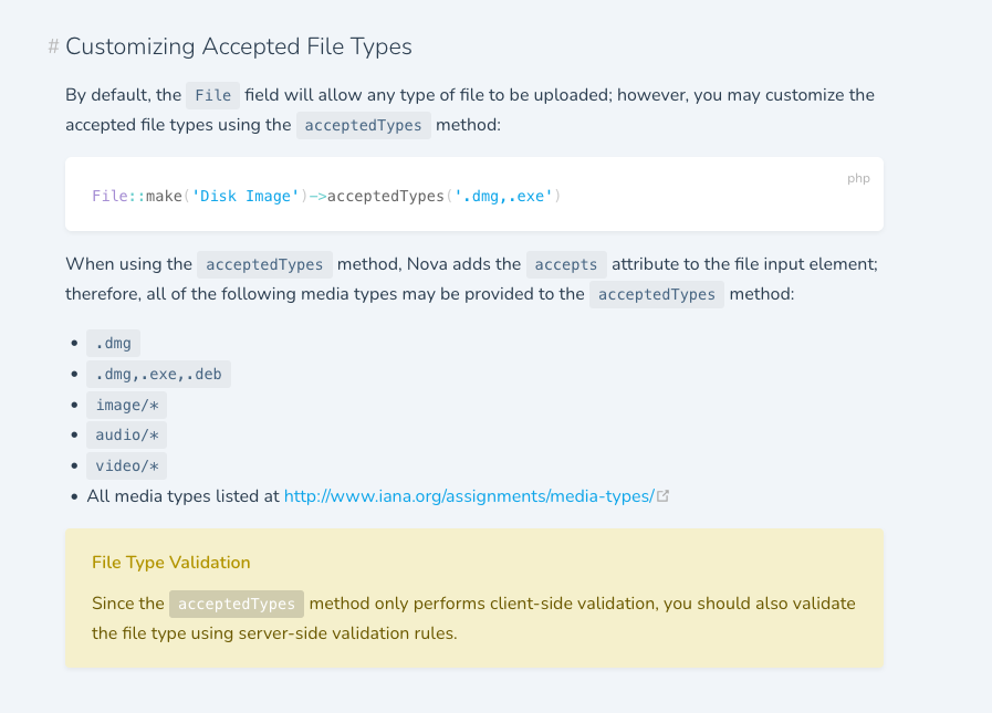 It is in the documentation. https://nova.laravel.com/docs/4.0/resources/file-fields.html#customizing-accepted-file-types |