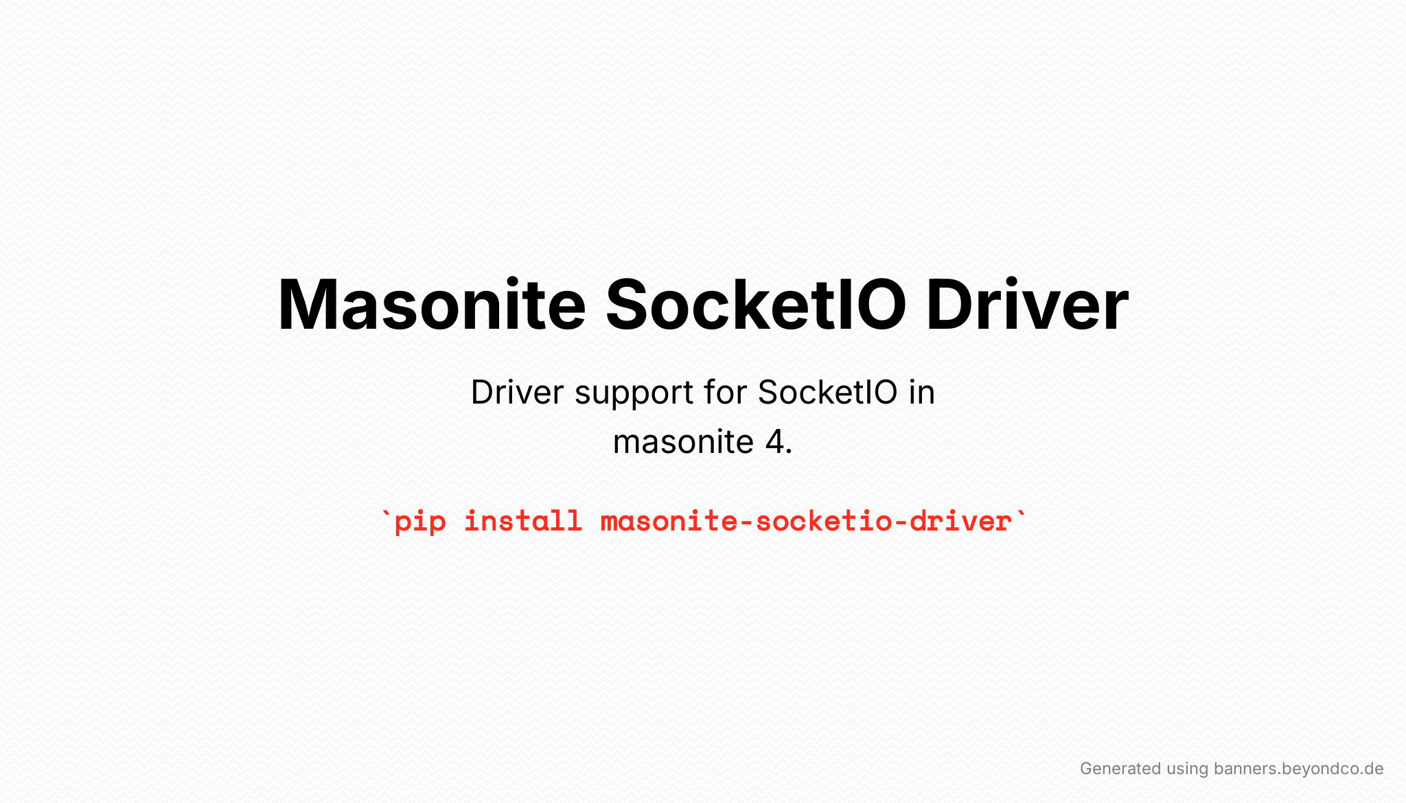 pip install masonite-socketio-driverAdd provider inside config/providers.py.