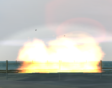 3-5 | A small explosion is generated. Shortly after, sometimes, black smoke is generated. This type is used for vehicle explosions. |