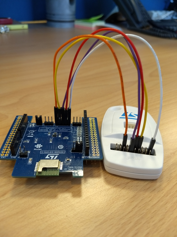 Then you can use a standard ST-Link V2-1 with 5 jumper wires female-female together with RF-Flasher Utility software tool (currently available only for Windows PC) in order to update the firmware of the BLE module of X-NUCLEO-BNRG2A1.