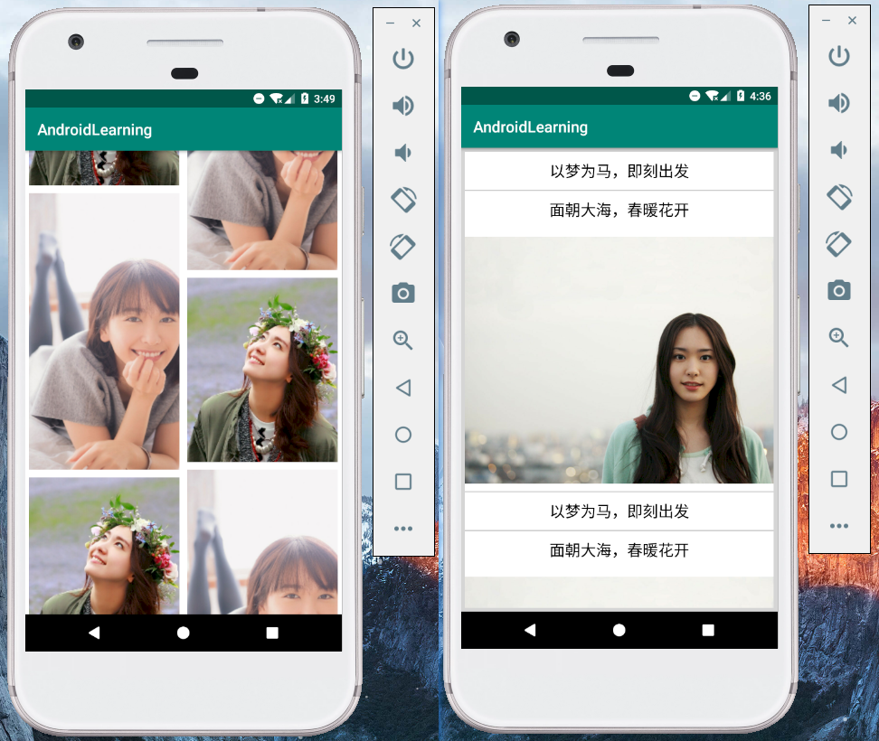 - GridView(left) & ScrollView(right)