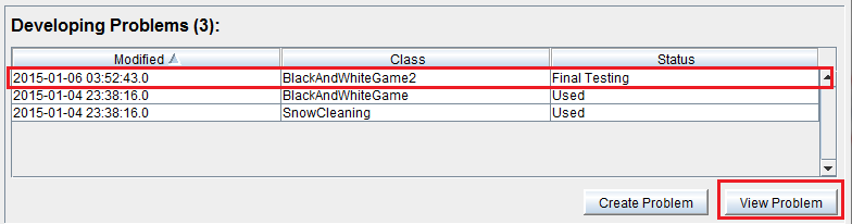 "Problems -> Main Long Problem Room", you will see your created problem already approved(in this example it's in Final Testing). -