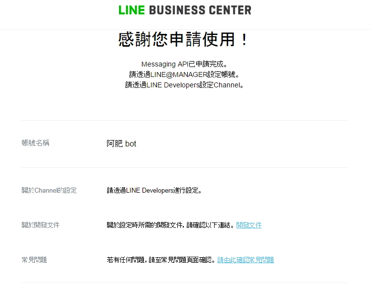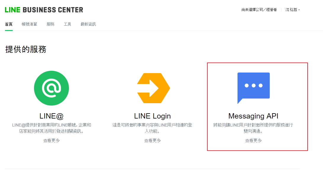 接下來你會看到 開始使用Messaging API 以及 開始使用Developer Trial