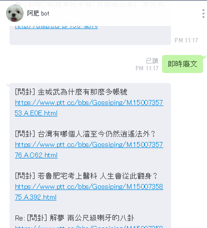 希望這個 阿肥bot 能帶給大家歡樂,程式碼很多基本上就是簡單的爬蟲。