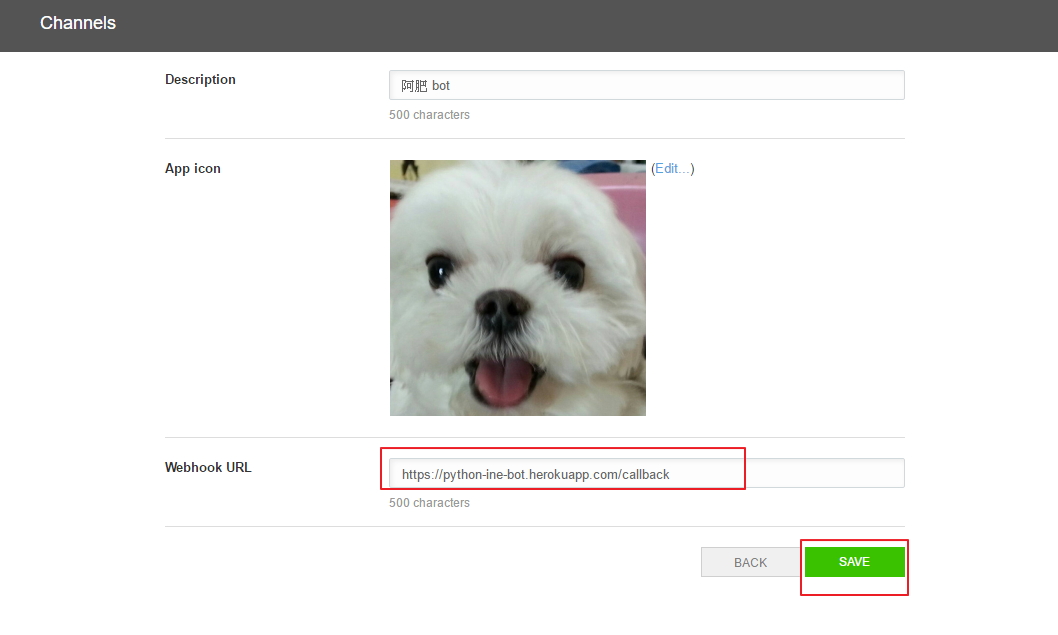 如上圖,我的網址是 https://python-ine-bot.herokuapp.com/